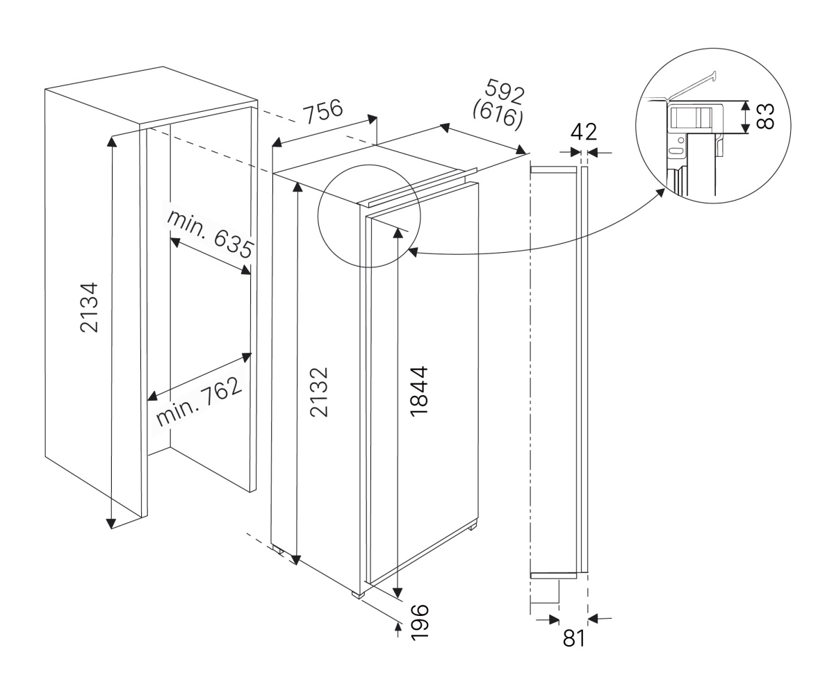 | Размеры ниши для встраивания,мм | 2134х762х635 |