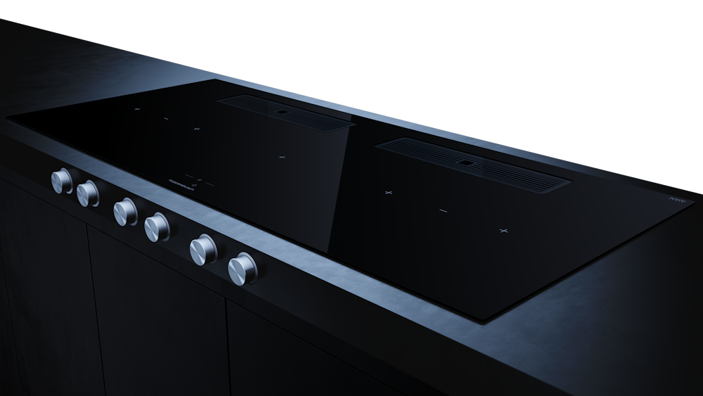 Индукционная варочная поверхность с вытяжкой Kuppersbusch с ручками из нержавеющей стали KMI 12850.0 SR-E Black Chrome