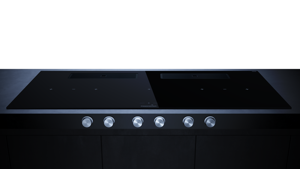 Индукционная варочная поверхность с вытяжкой Kuppersbusch с ручками из нержавеющей стали KMI 12850.0 SR-E Black Velvet