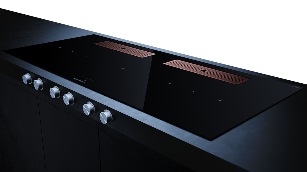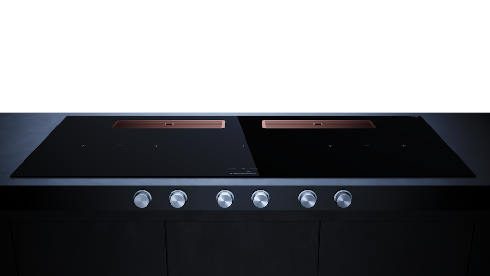 Индукционная варочная поверхность с вытяжкой Kuppersbusch с ручками из нержавеющей стали KMI 12850.0 SR-E Copper