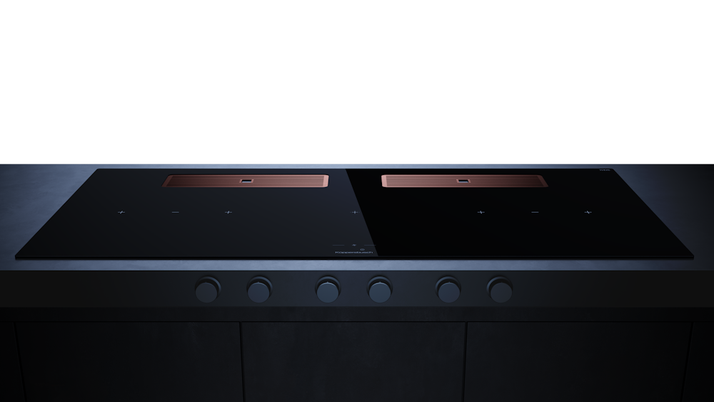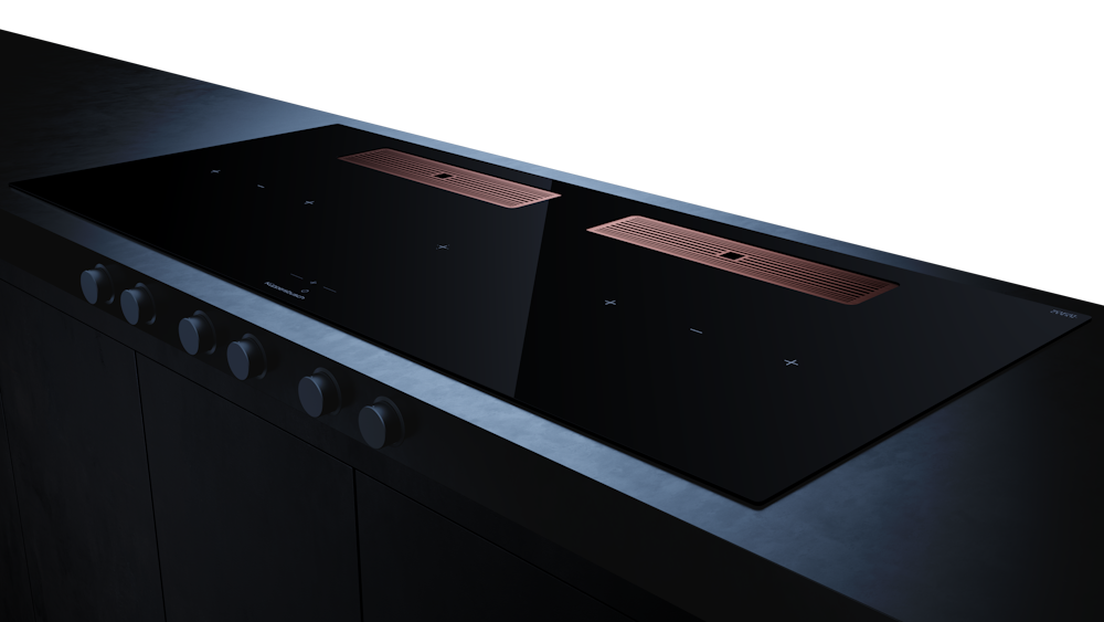 Индукционная варочная поверхность с вытяжкой Kuppersbusch с чёрными ручками KMI 12850.0 SR-S Copper